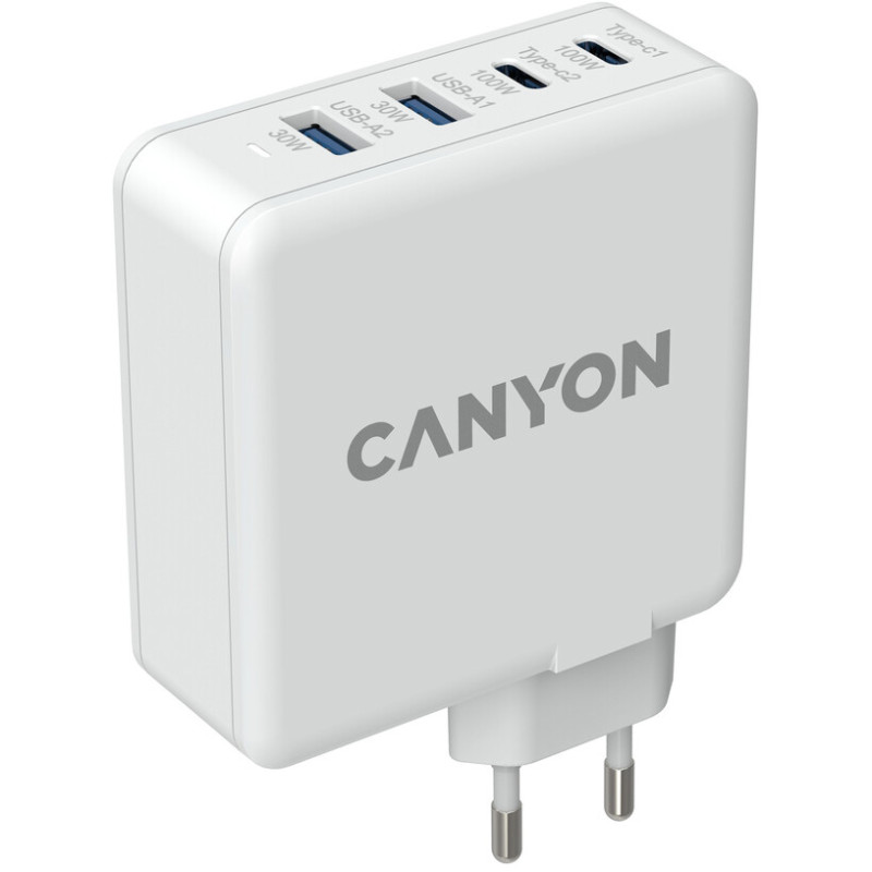 Зарядний пристрій Canyon H-100 GaN 2xUSB-C, 2xUSB-A, PD3.0, QC3.0, 100W White (CND-CHA100W01)