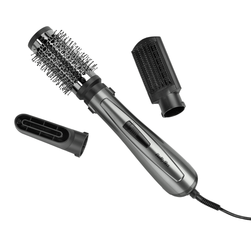 Фен-щітка BaByliss AS261E потужністю 1000 Вт призначена для щоденного сушіння та укладання волосся, поєднуючи зручність та багатофункціональність. У комплекті передбачені змінні насадки: термощітка 50 мм для надання об'єму, насадка для випрямлення та сушіння, що дозволяє легко створювати різні зачіски.